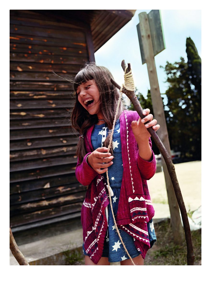 Barwy khaki, bordo i imbir wymieszane z granatem pojawiają się i w chłopięcych stylizacjach, wprowadzając folklorystyczne akcenty. Nakrapiana wełna i żakardowe dzianiny składają się z wytartym jeansem, tworzący casualowy look. Na szczególną uwagę zasługują również kurki bombery z printami moro. Kolekcję chłopięcą charakteryzuje luźna elegancja, gdzie sportowego charakteru nadają jasne i energetyczne kolory, a królewski błękit, pomarańcze i żółcie uzupełniają go w wyraźne detale.